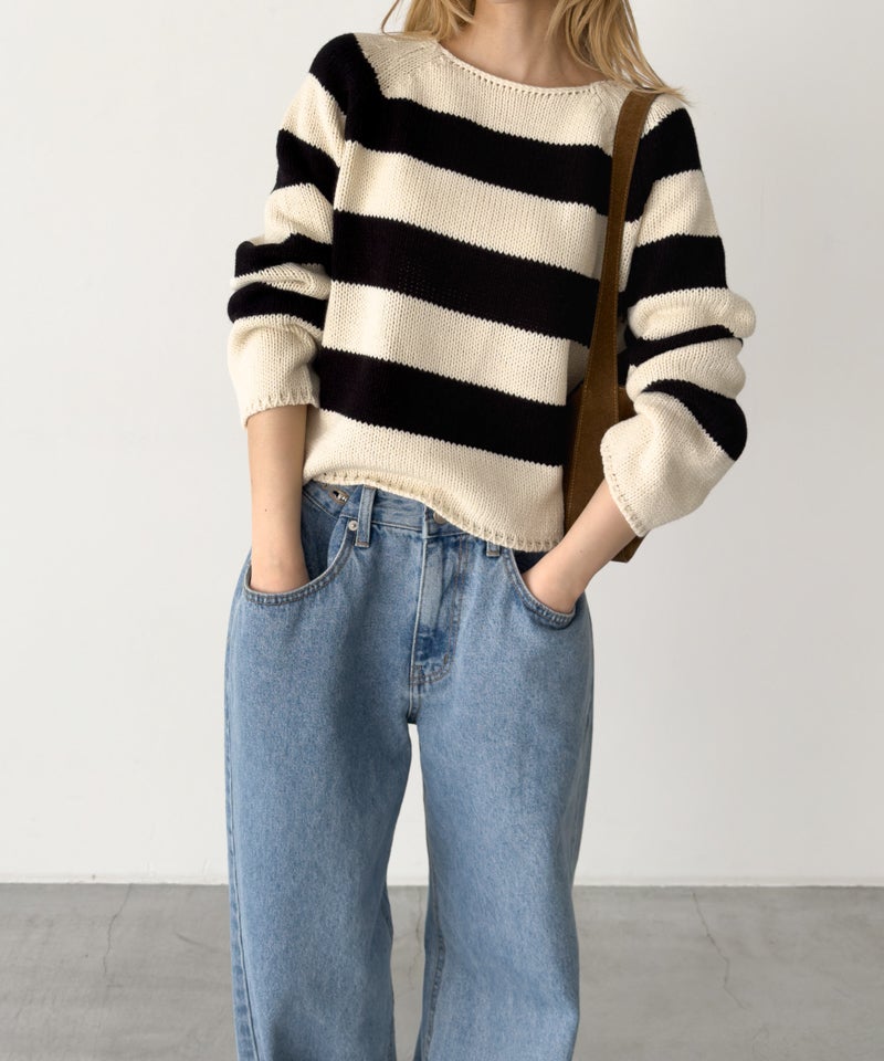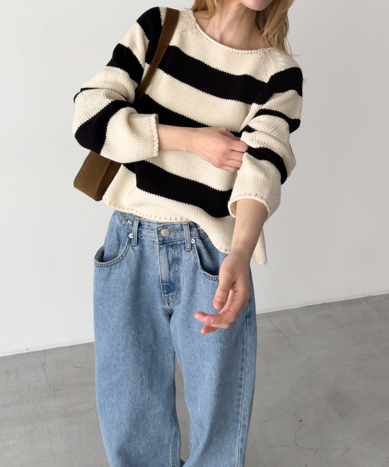 ラグランボートネックニット