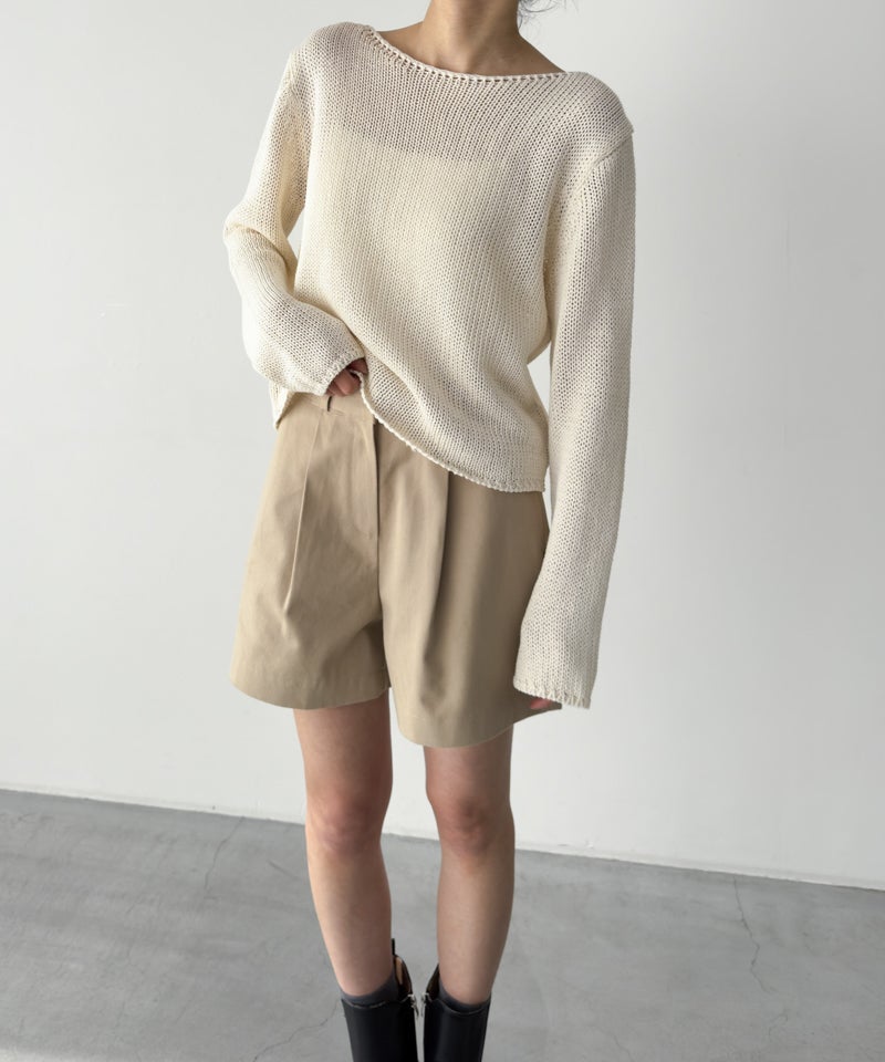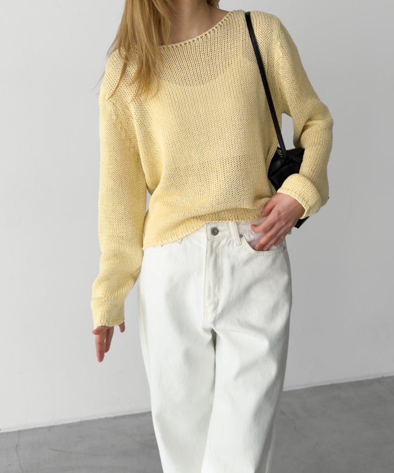 軽やかな見た目で、季節の変わり目にも取り入れやすいペーパーボートニット。