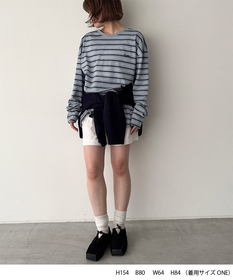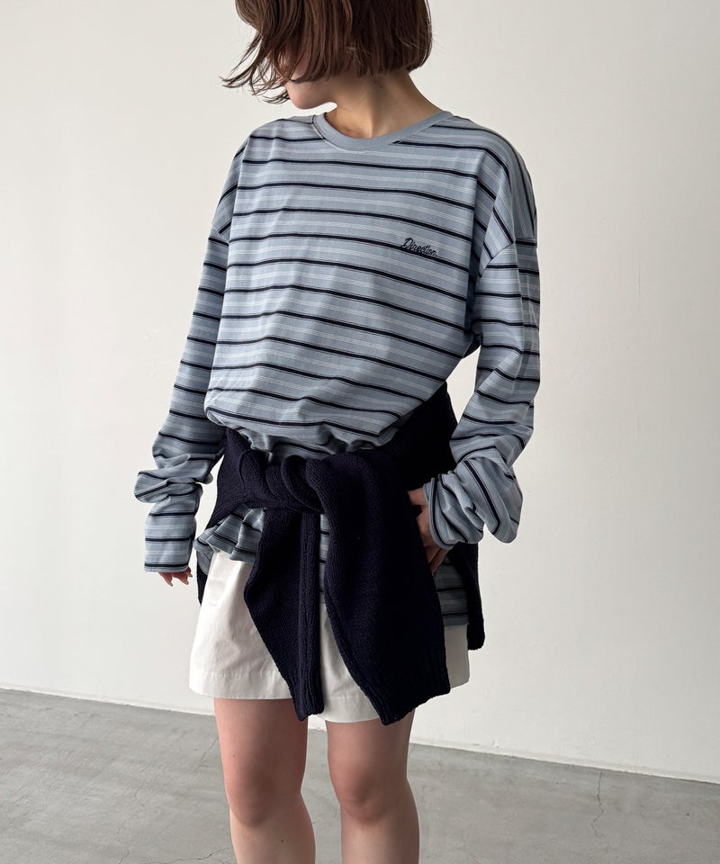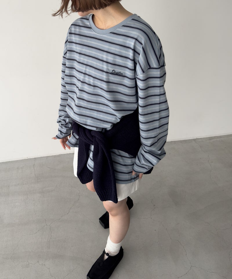 胸刺繍ボーダーロンT