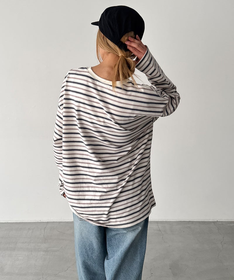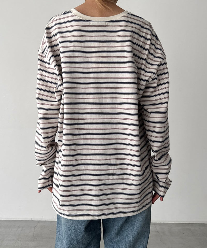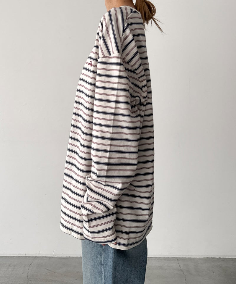 ヴィンテージライクな配色が目を惹く、胸元のさりげないロゴ刺繍がアクセントになったボーダーロンT。