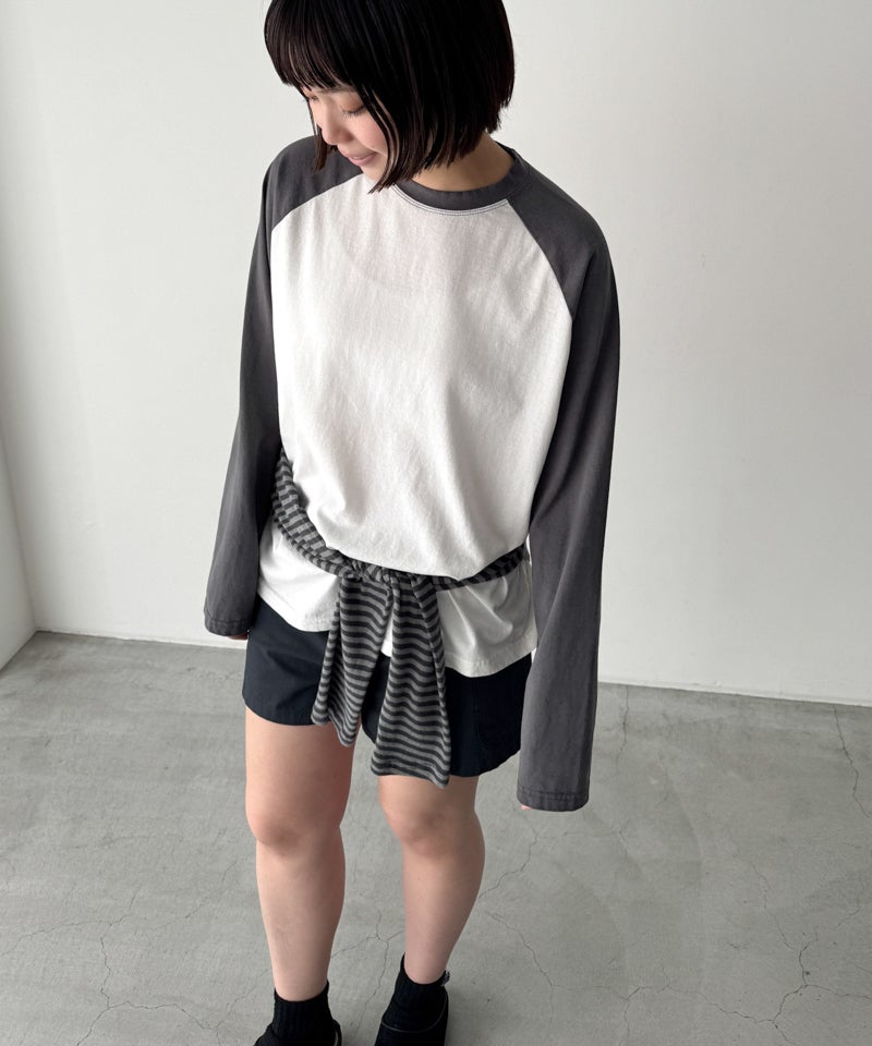 ラグランスリーブは肩のラインを拾いにくく、華奢見え効果が期待できるのも魅力です。
