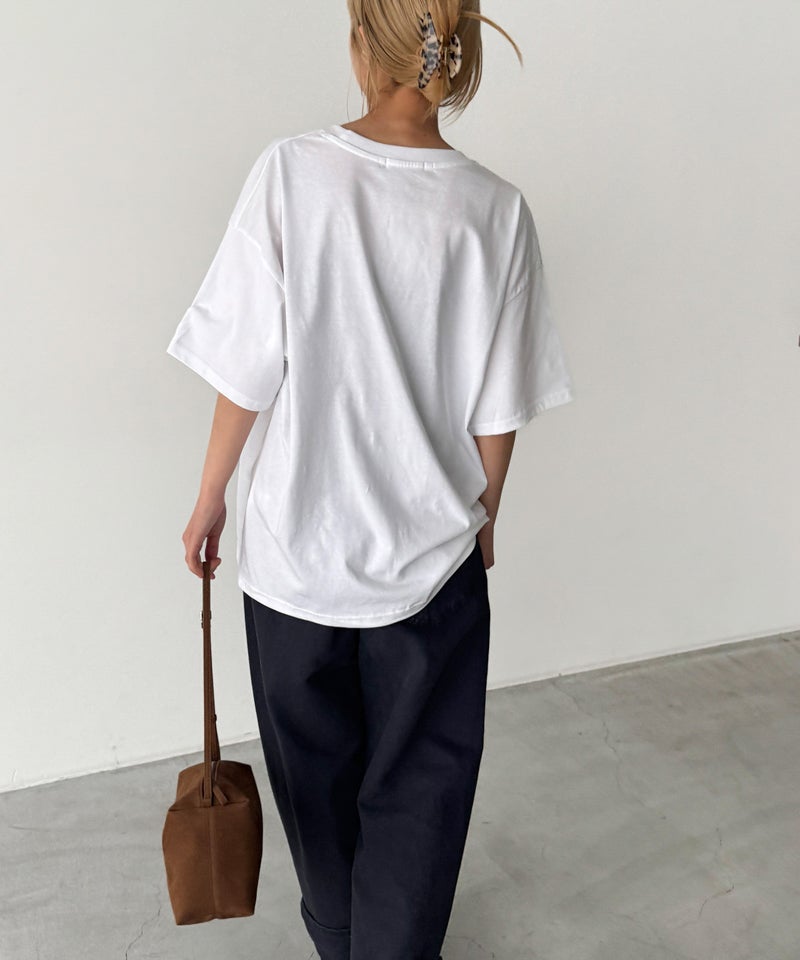 オーバーサイズなシルエットと長めの袖丈が、リラックス感のあるメンズライクな雰囲気を演出します。