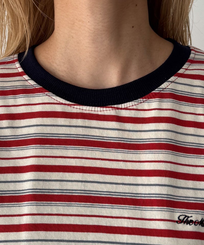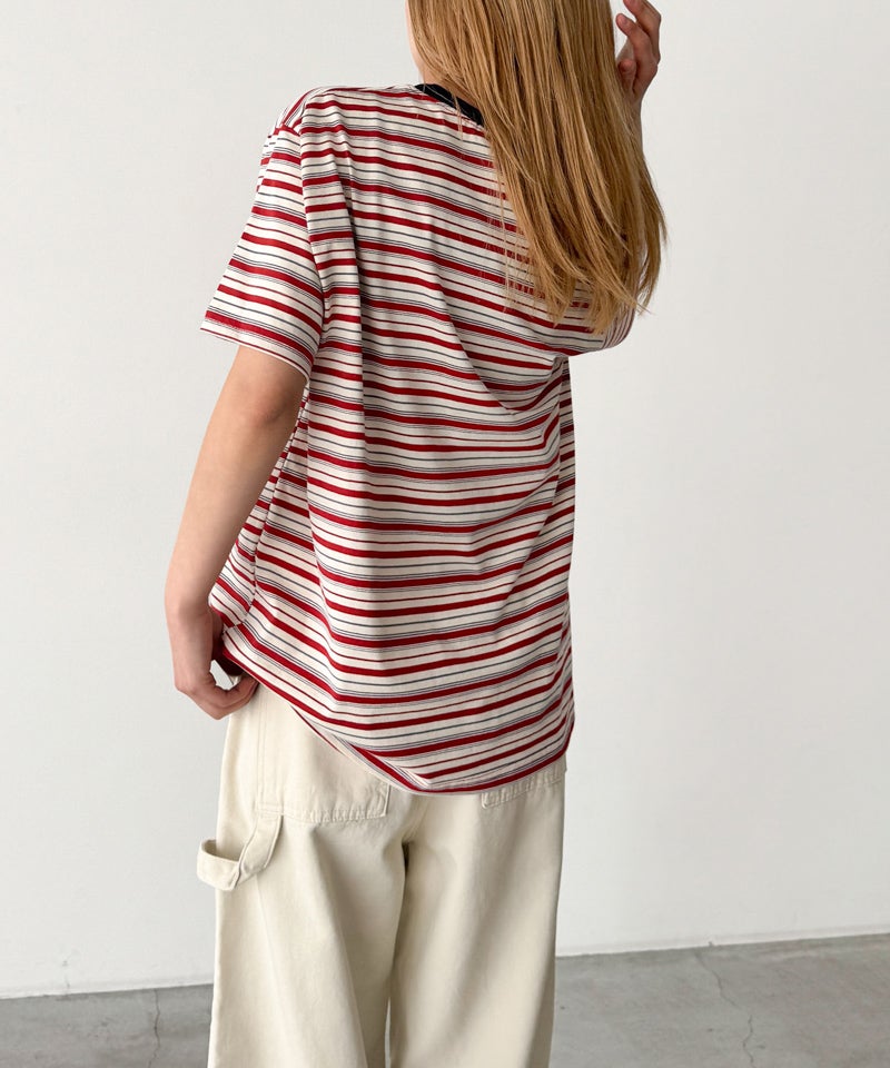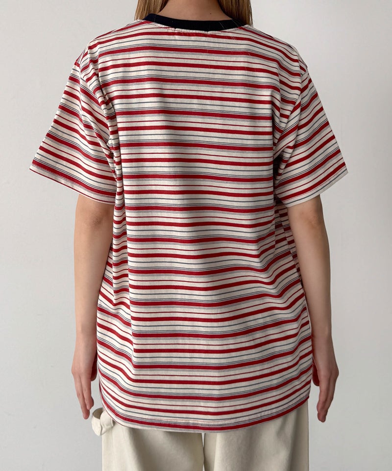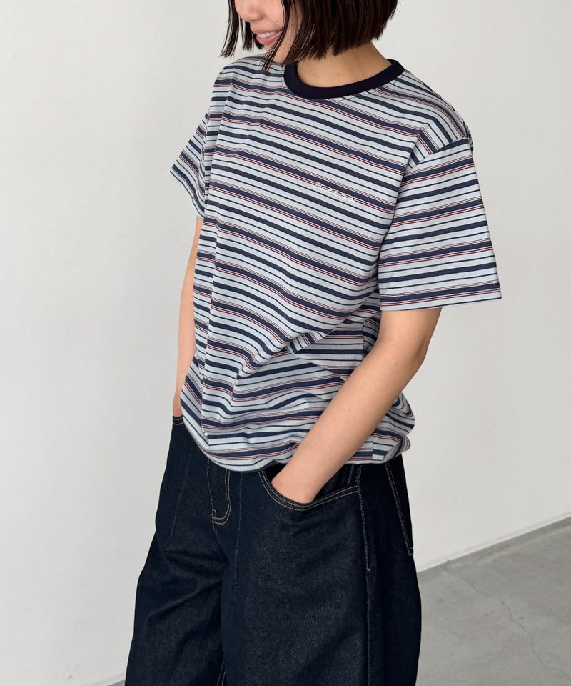 レトロな配色が目を惹く、マルチボーダーTシャツ。