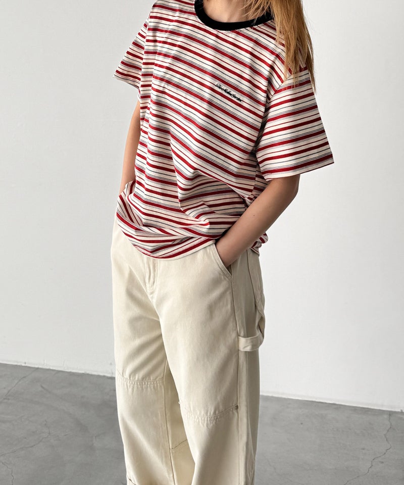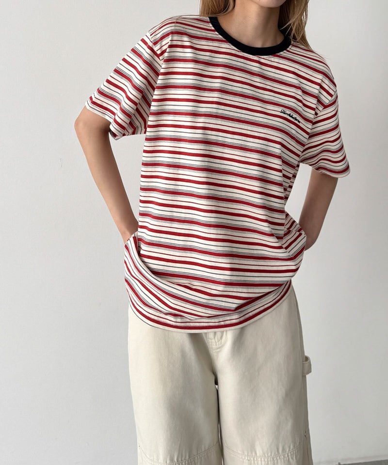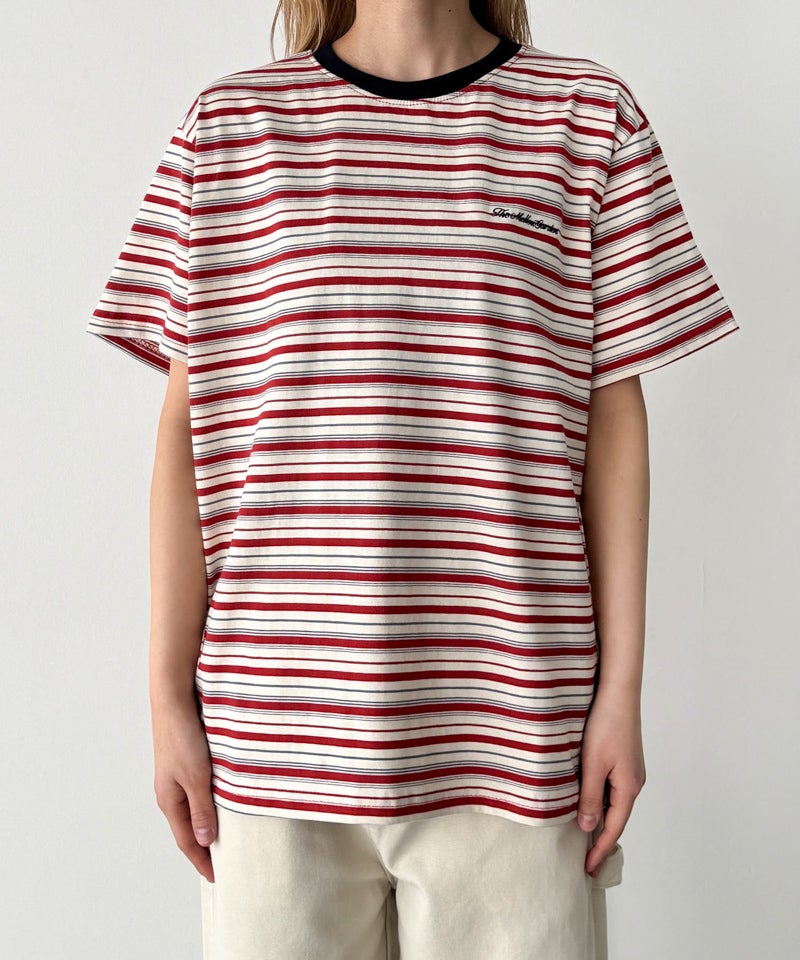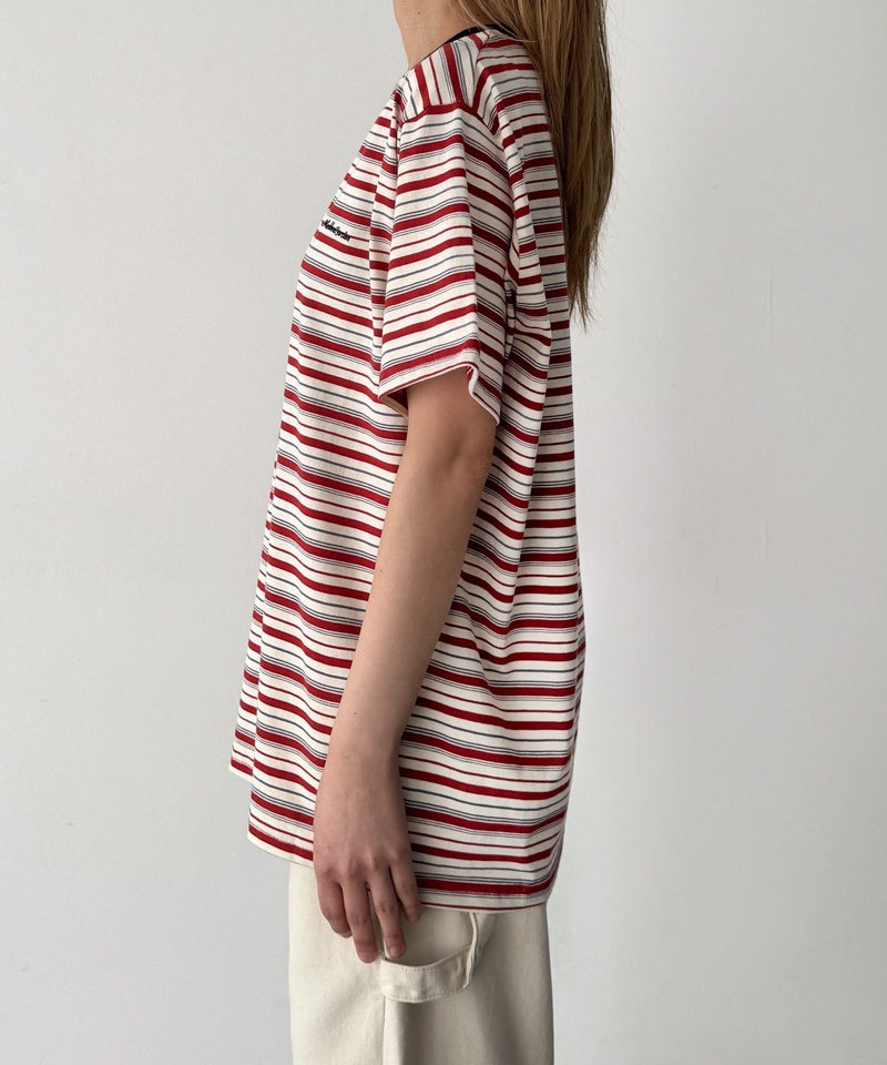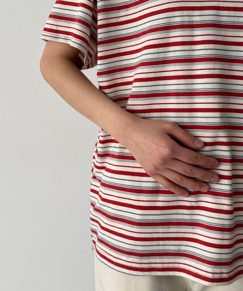 レトロな配色が目を惹く、マルチボーダーTシャツ。