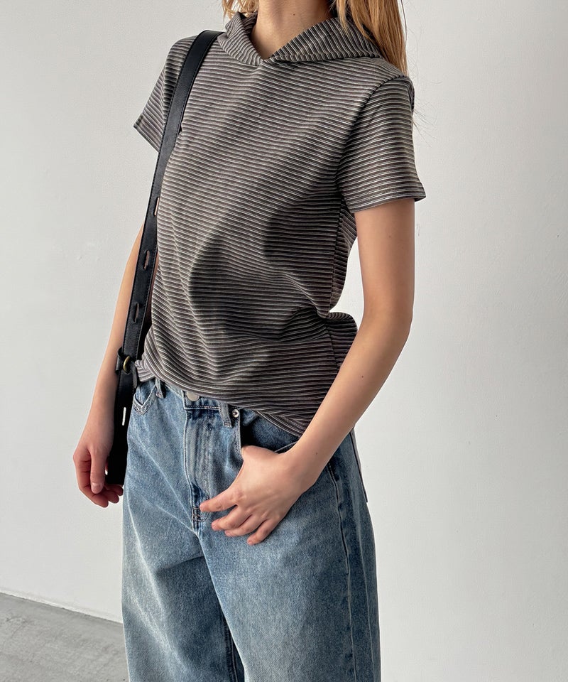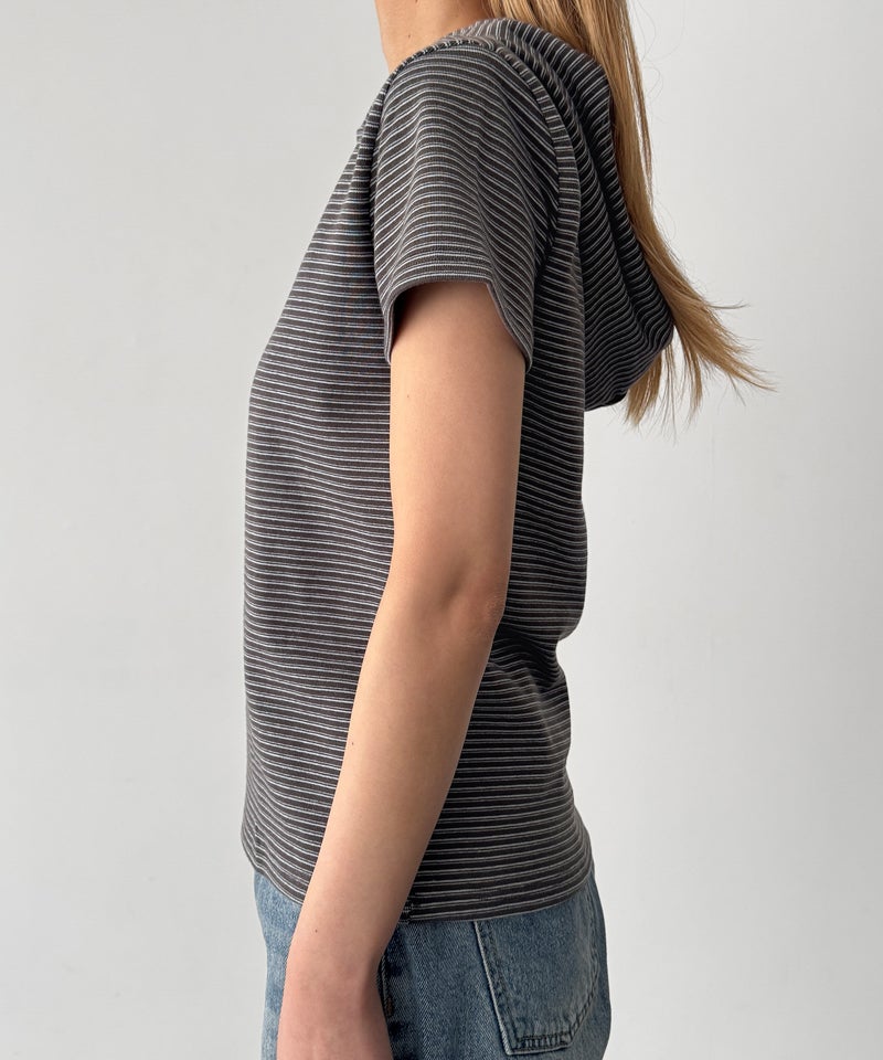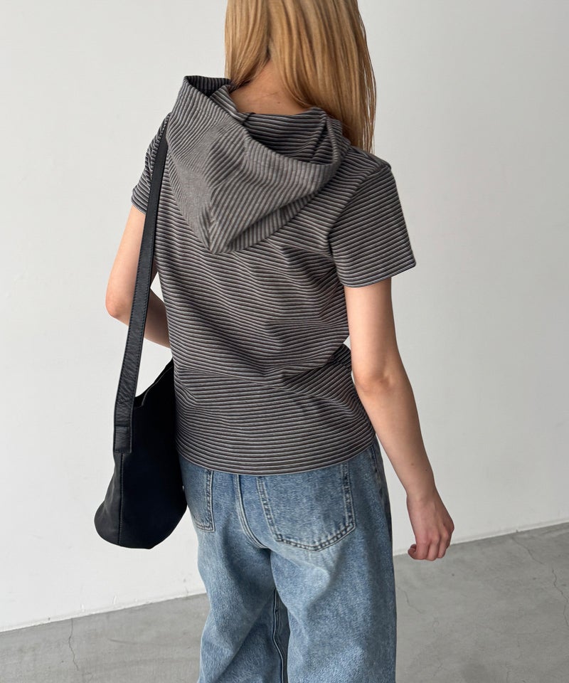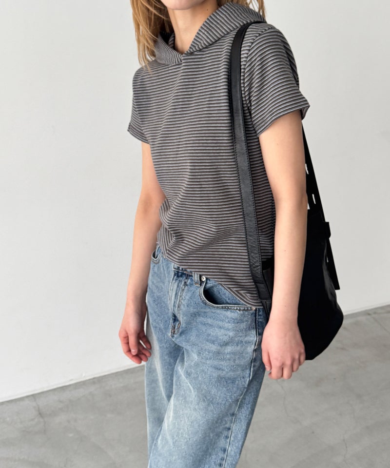 マイクロボーダーがクリーンな印象の半袖フーディー。