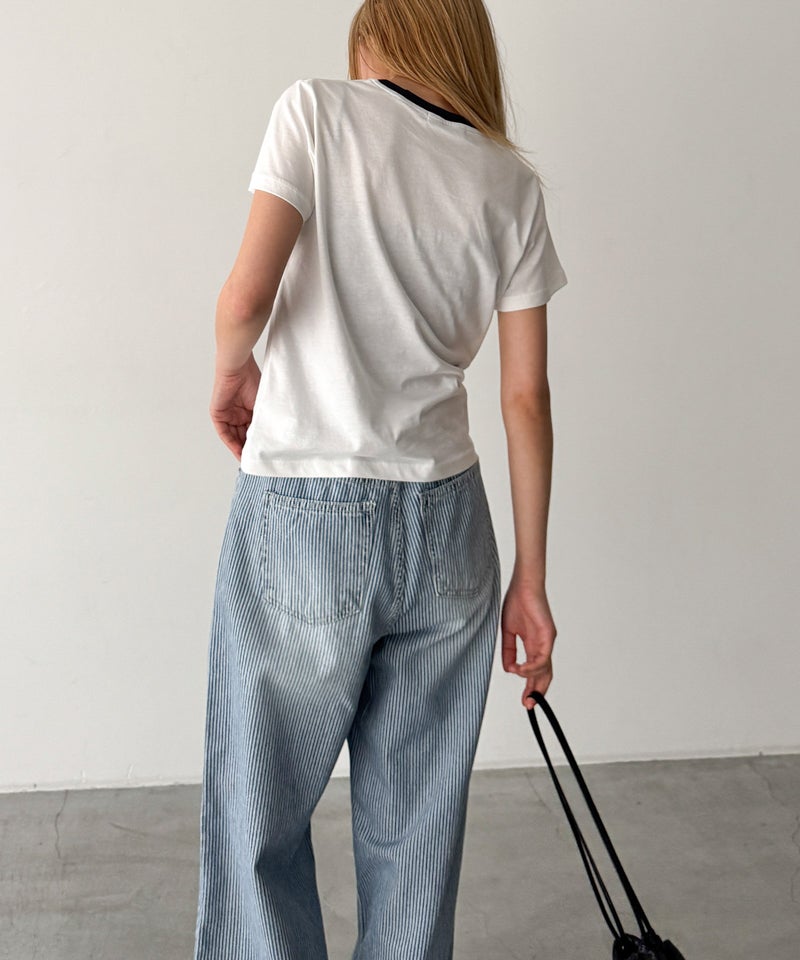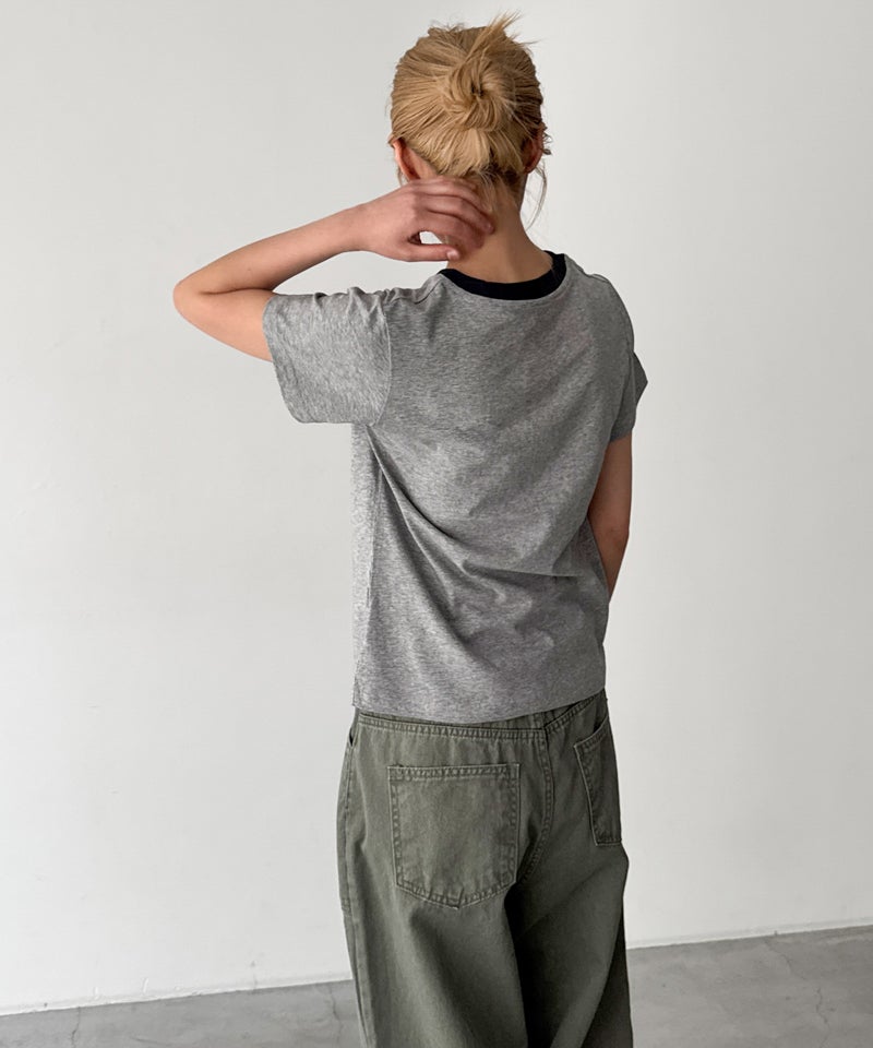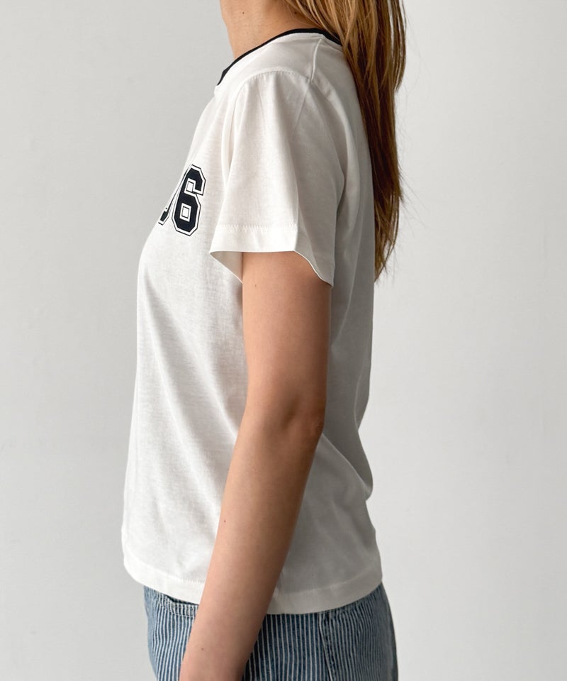 首元に施したリンガーデザインがアクセントになり、レトロなスポーティーさを演出します。