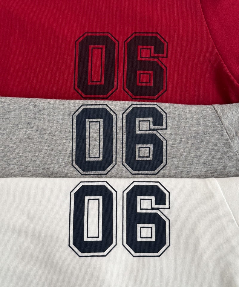 胸元には存在感のある「06」のナンバリングロゴをカレッジ調でプリント。