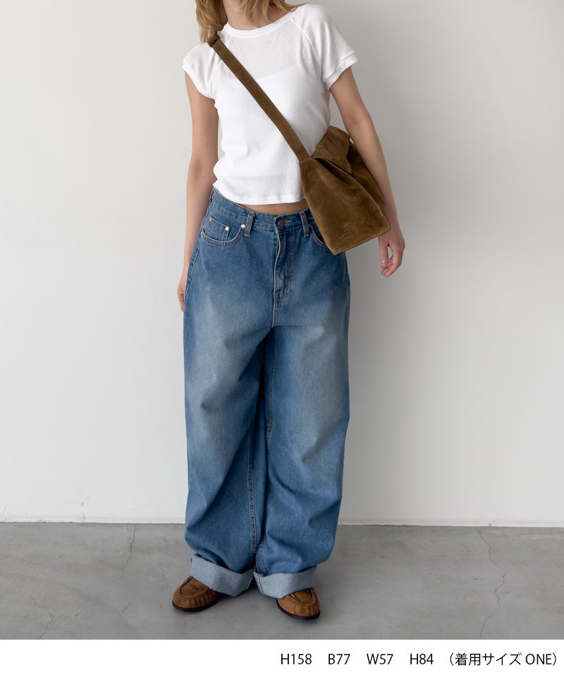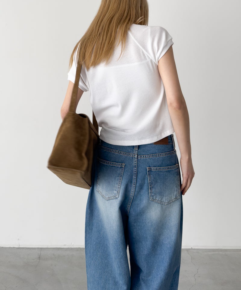 ワイドパンツやボリュームのあるスカートと合わせて、上下のシルエットにメリハリをつける着こなしがおすすめ。