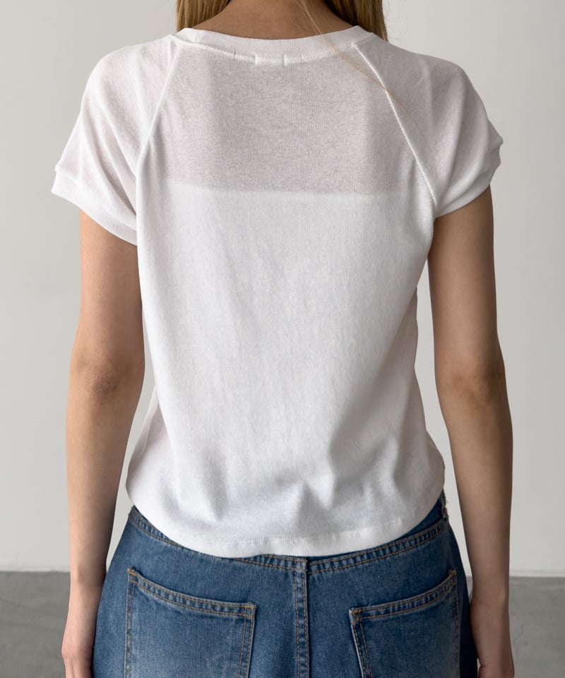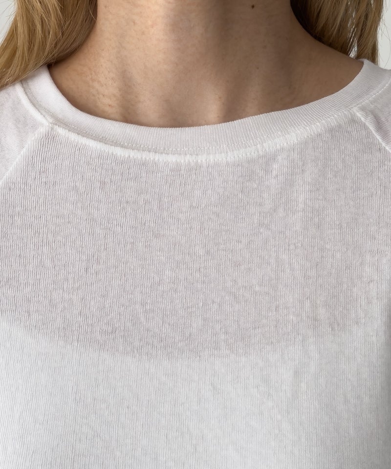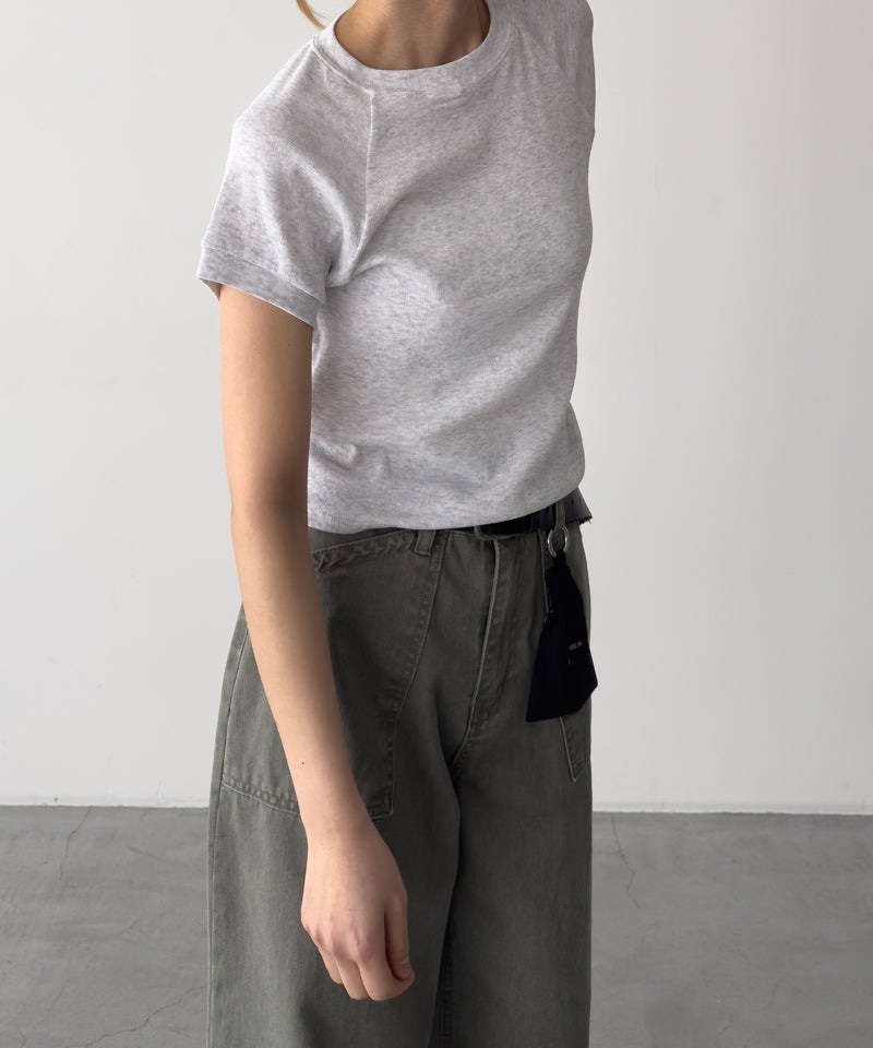 肩のラインを綺麗に見せてくれるラグランスリーブを採用し、すっきりとしたシルエットに仕上げました。