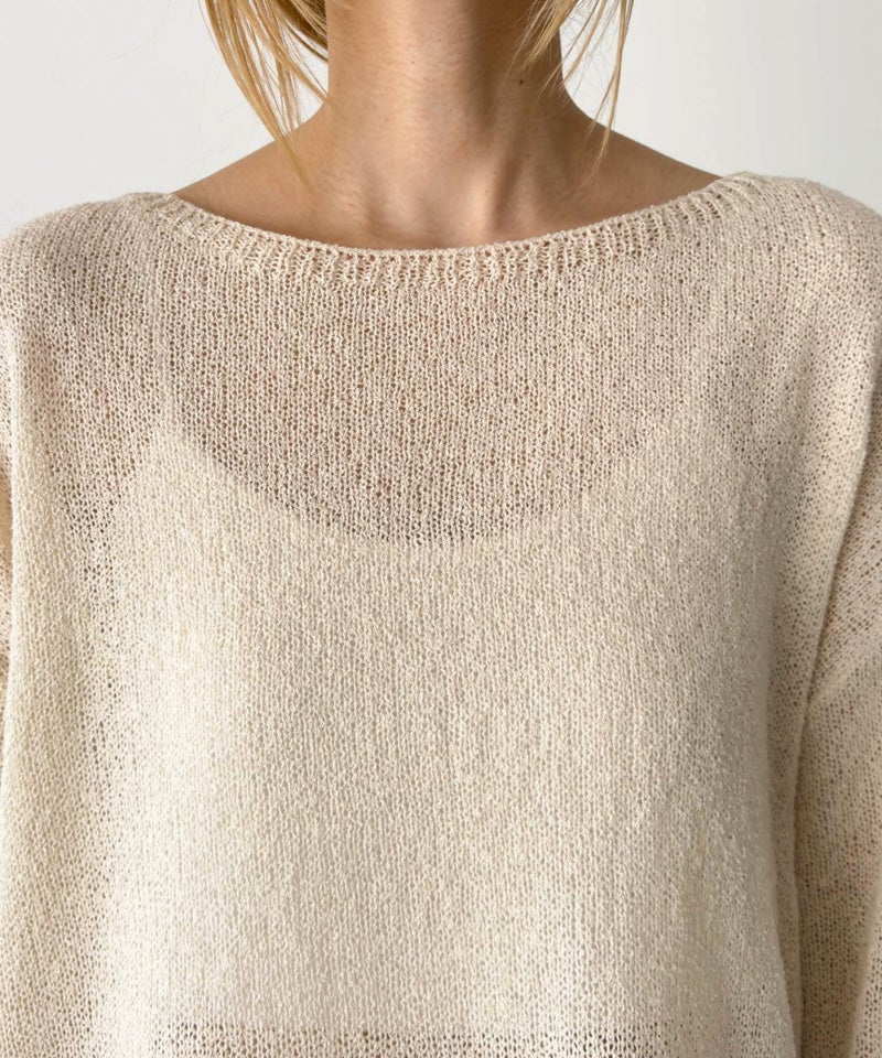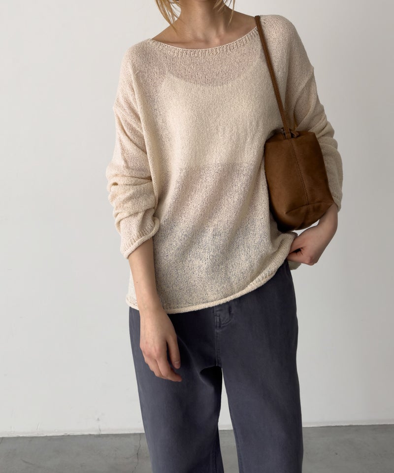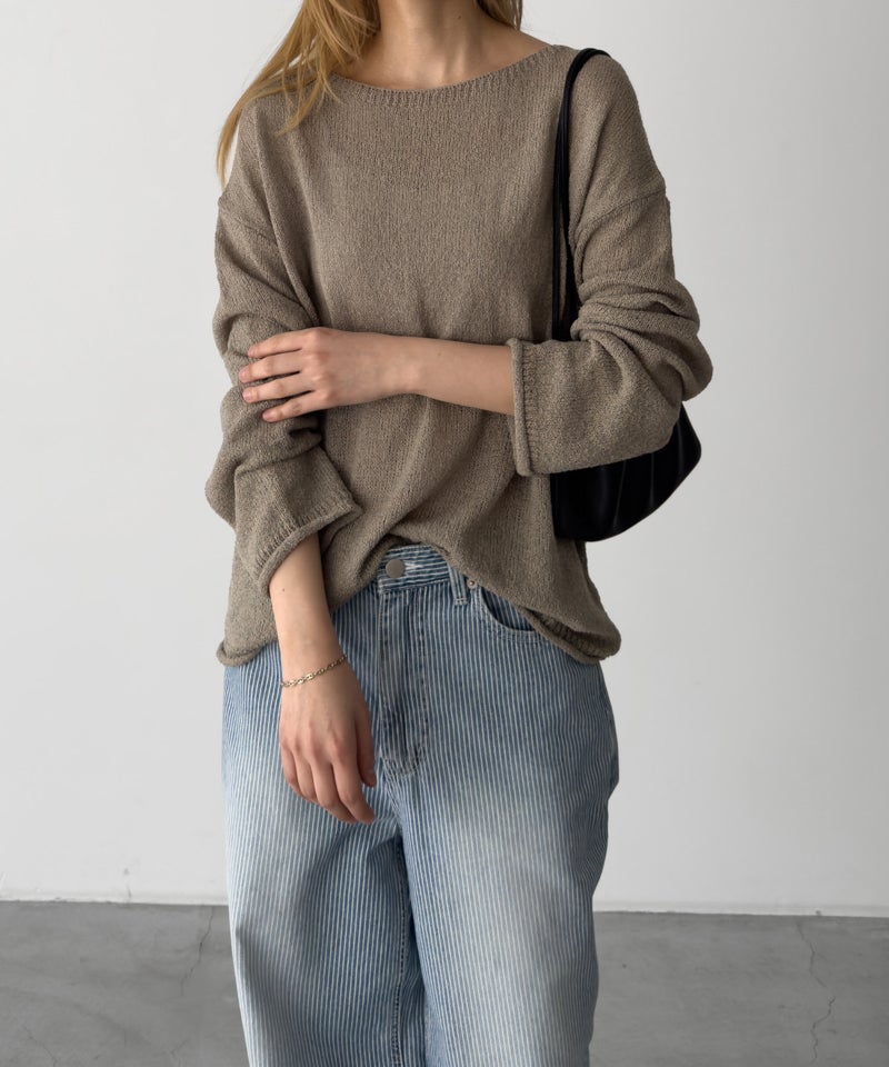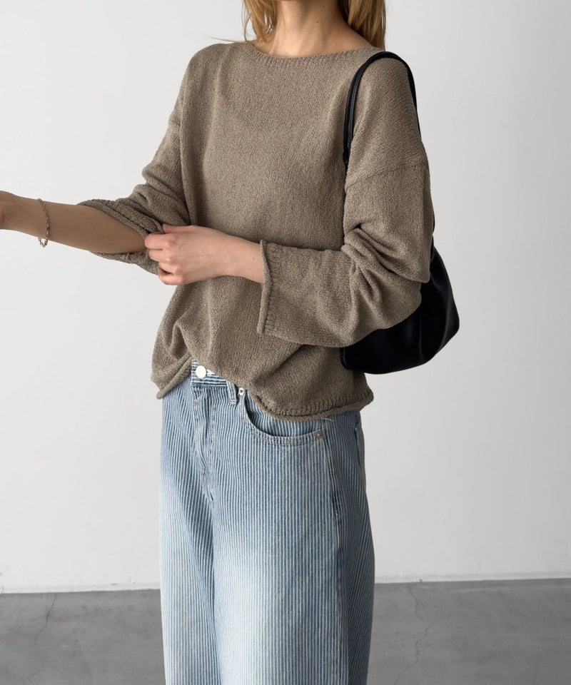 首元をすっきりと見せてくれる広めのボートネックが上品で、ヘルシーなデコルテラインを演出します。