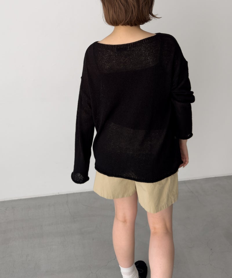 インナーにキャミソールやタンクトップを合わせた透け感を楽しむスタイリングがおすすめ。