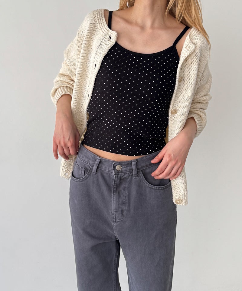 小ぶりなドット柄が大人可愛いキャミソール。