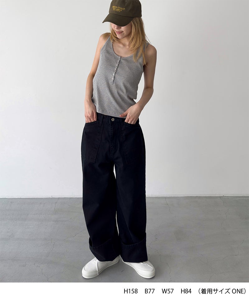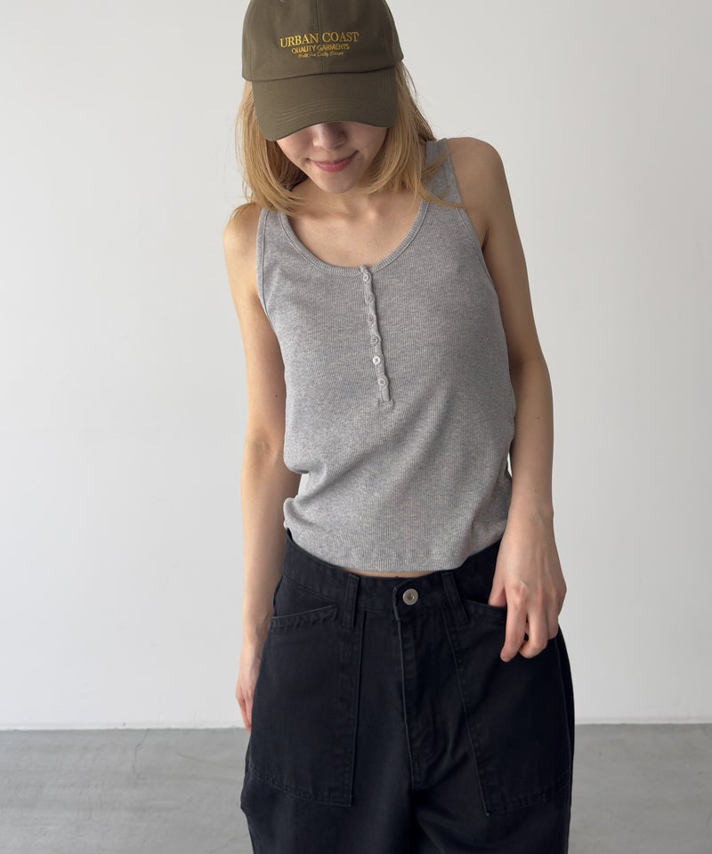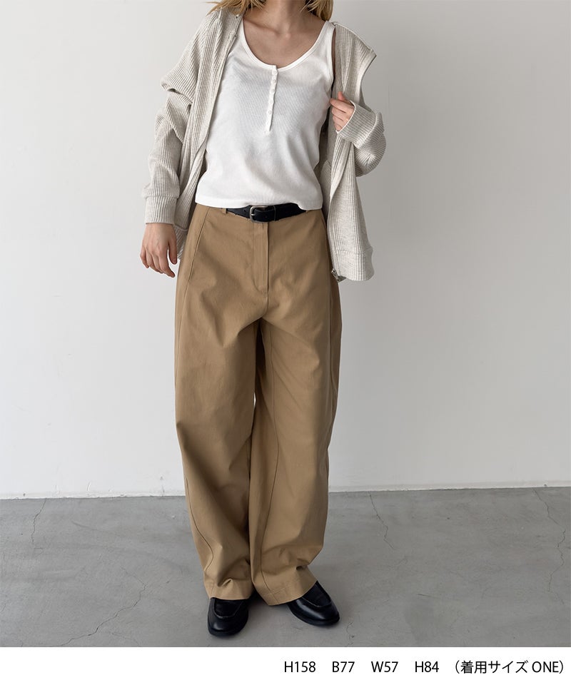 フロントに施したヘンリーネックデザインがアクセントになり、シンプルながらもカジュアルでこなれた表情に仕上げました。