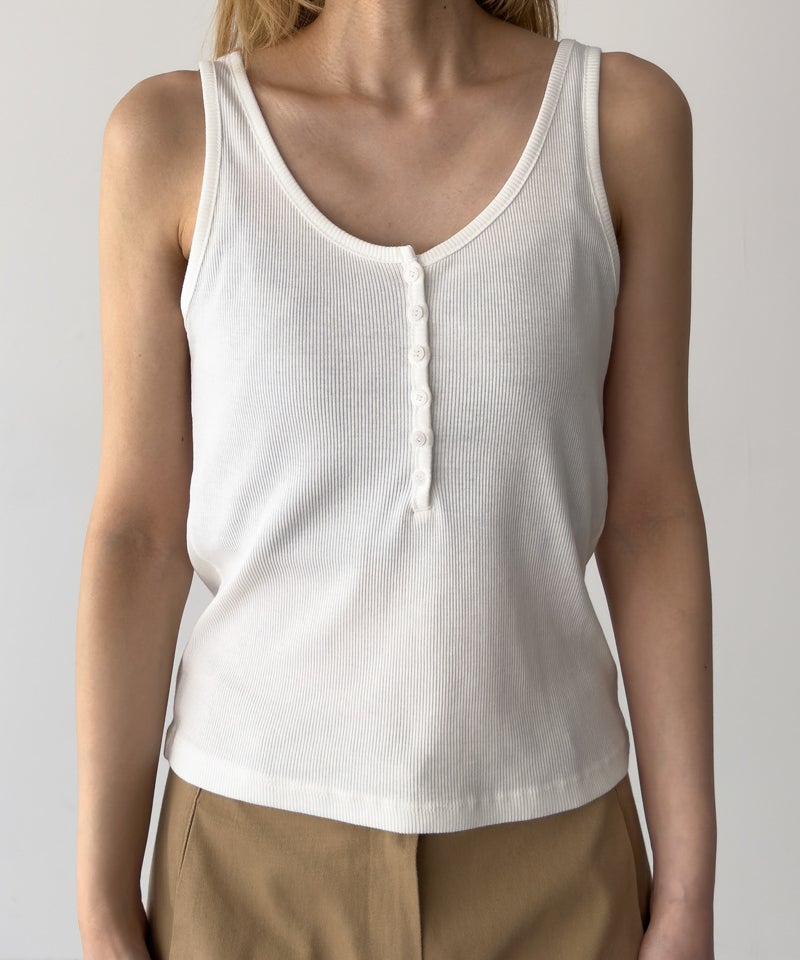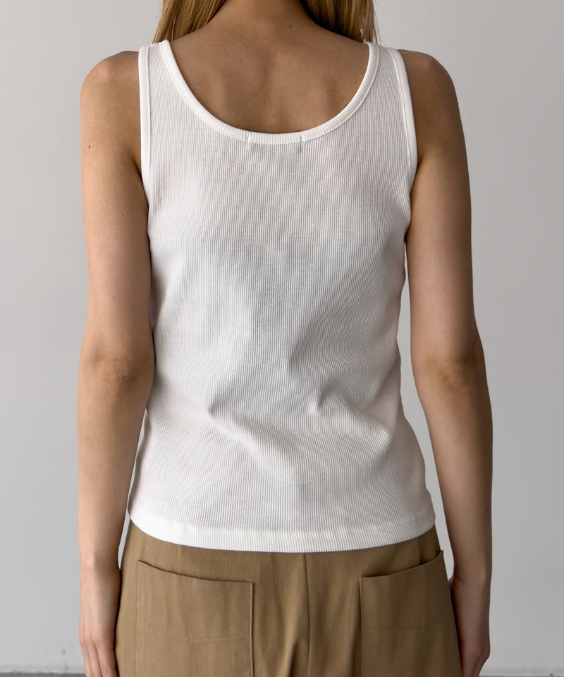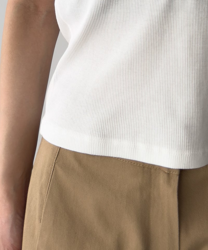 細めのリブが身体のラインに優しくフィットし、女性らしい華奢なシルエットを演出。