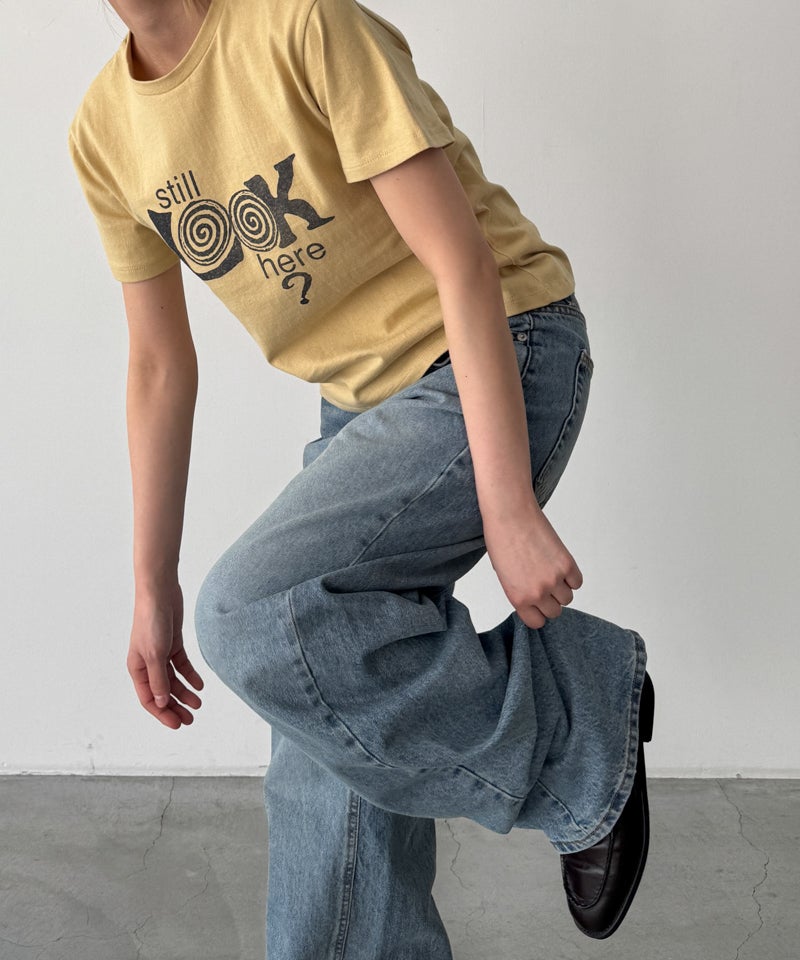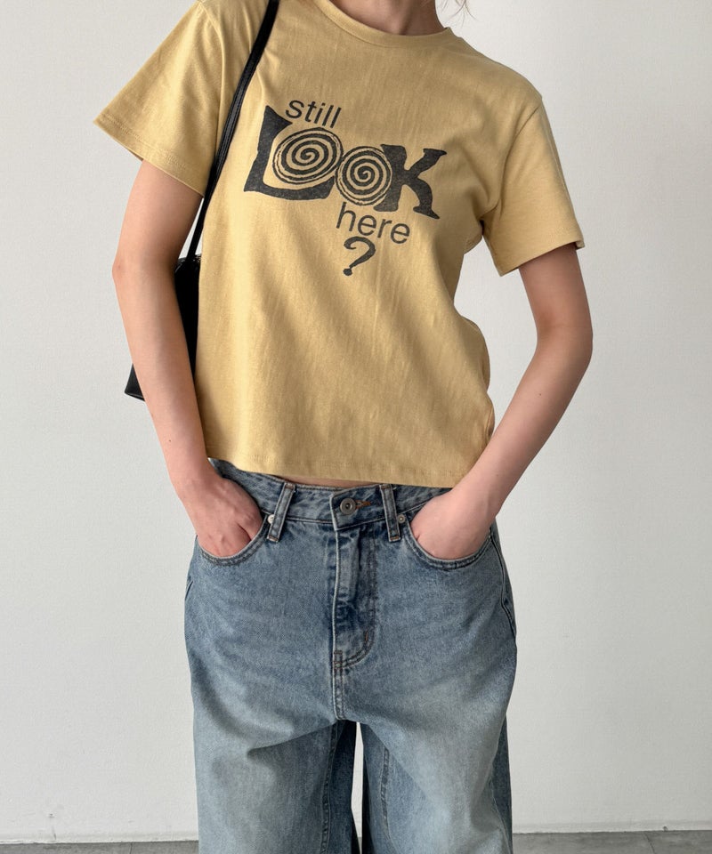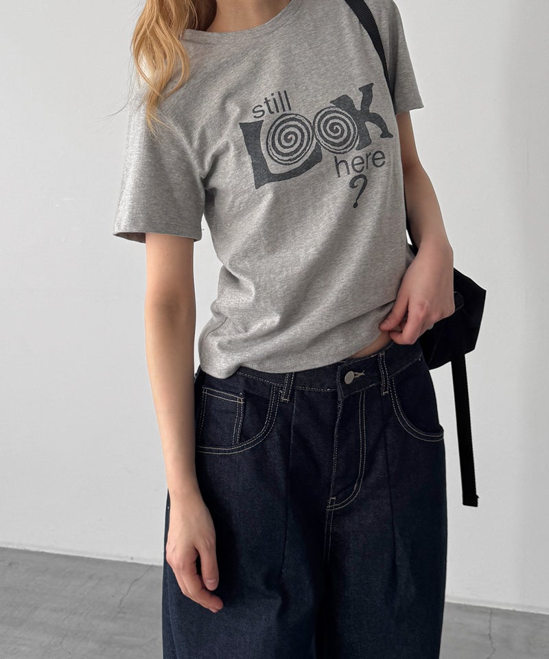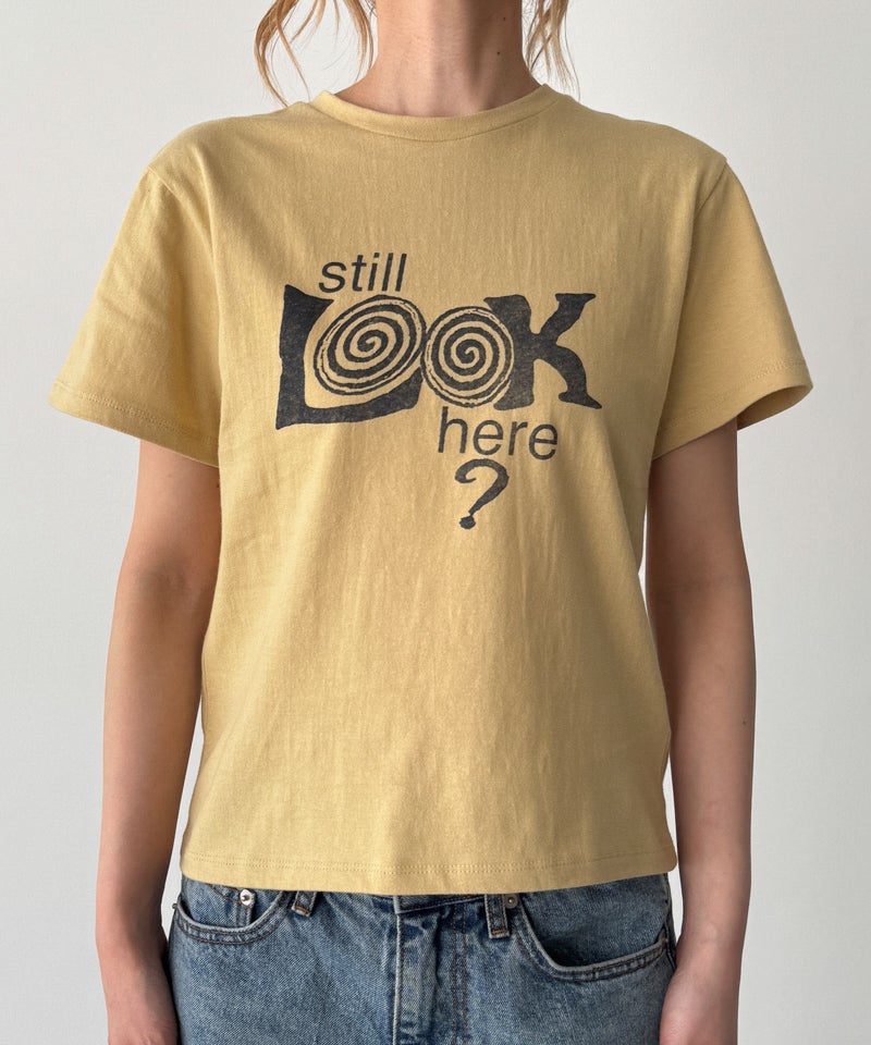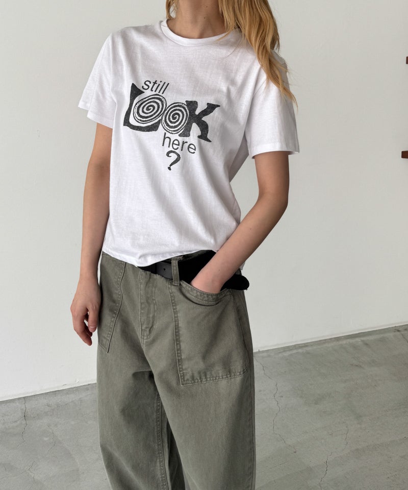 フロントに大きくプリントされた「Still LOOK here」のロゴが目を惹くヴィンテージっぽい雰囲気の半袖Tシャツ。