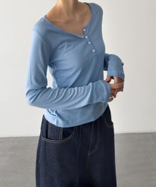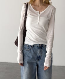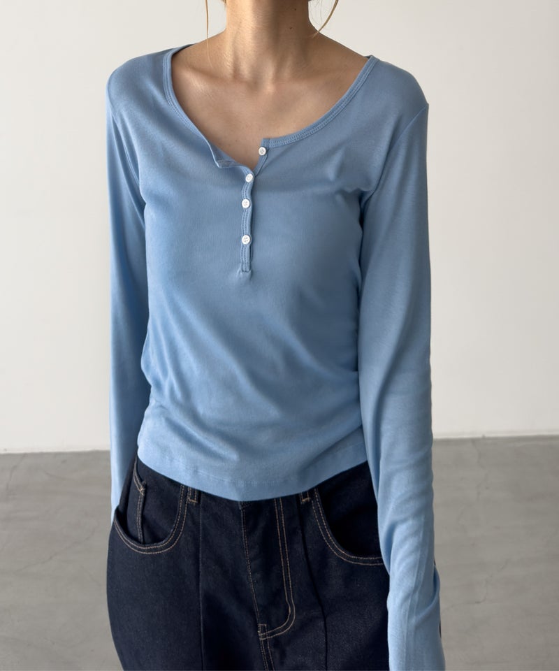 首元のボタンデザインが、程よいアクセントになったヘンリーロングTシャツ。
