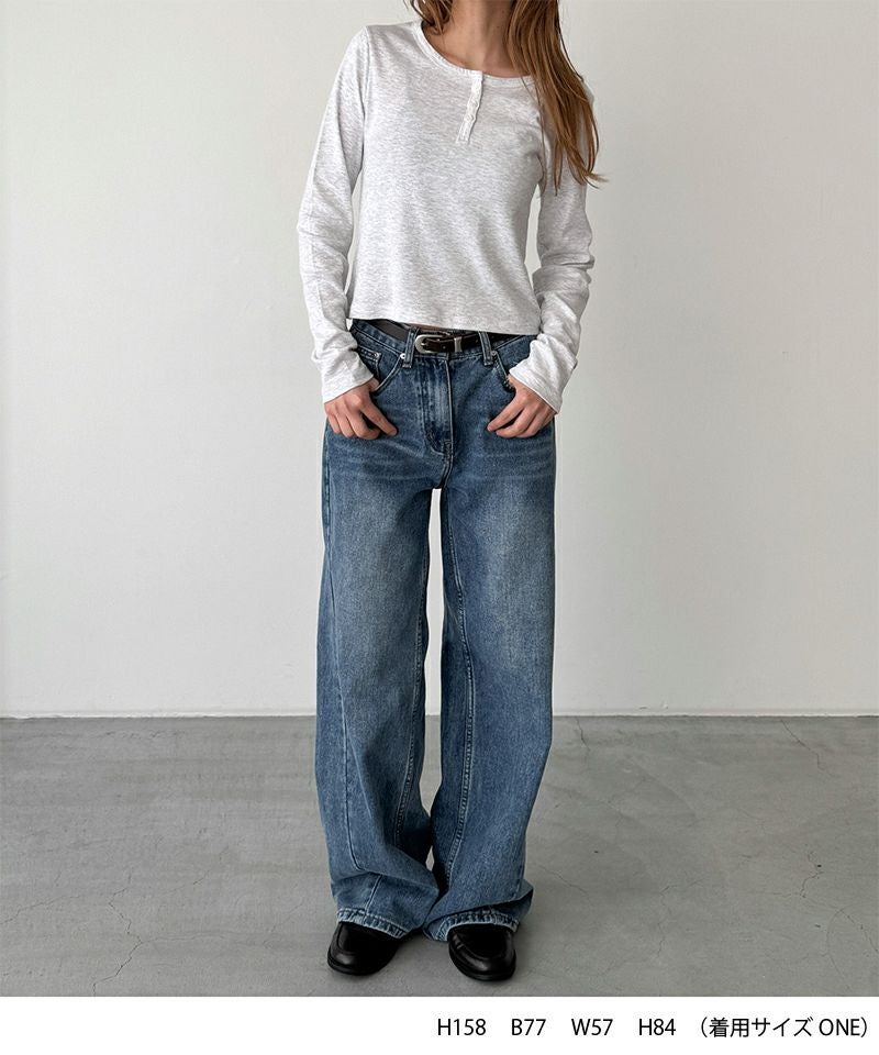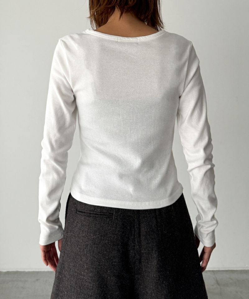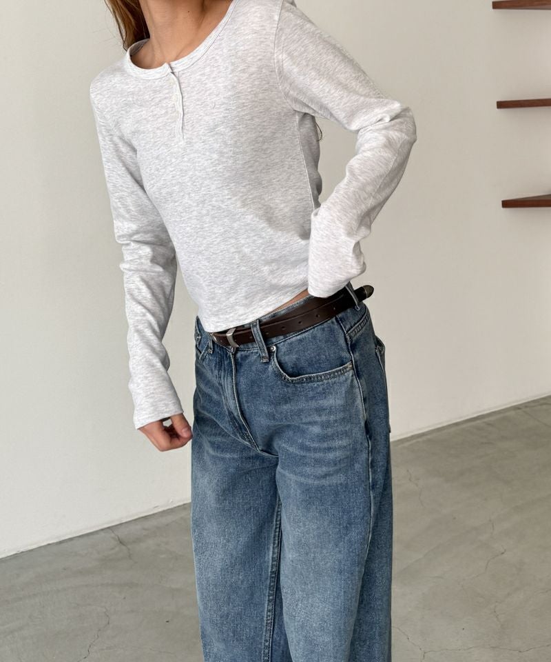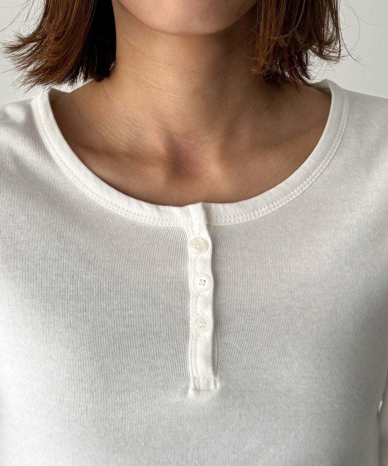 首元はヘンリーネック仕様ですっきりとした印象に。