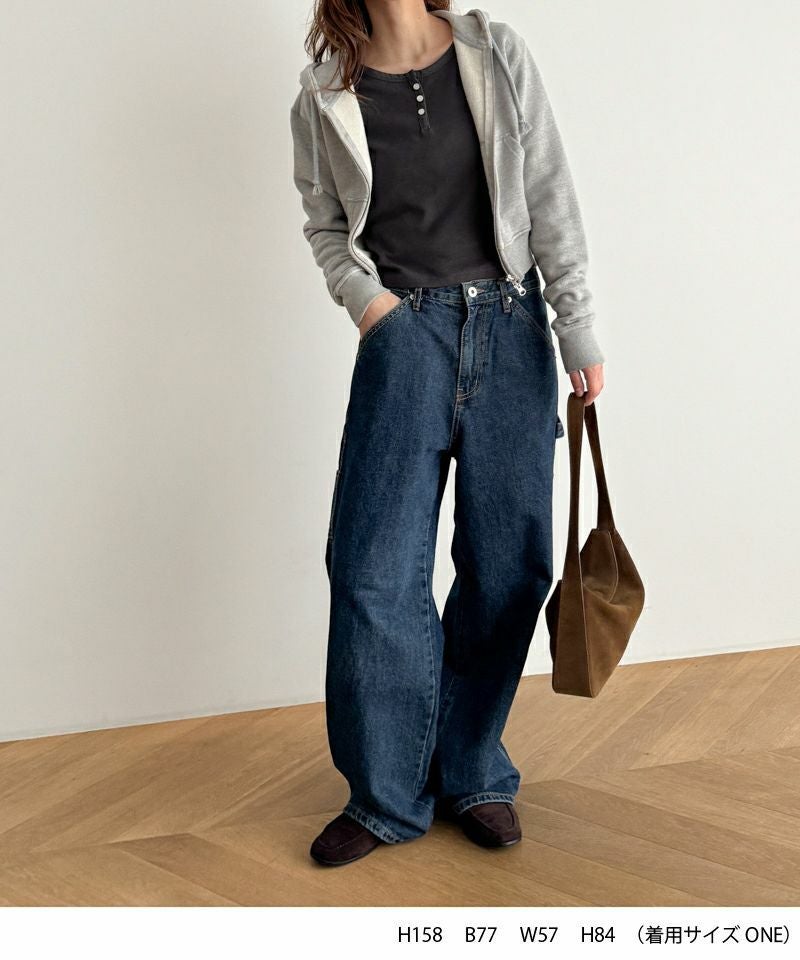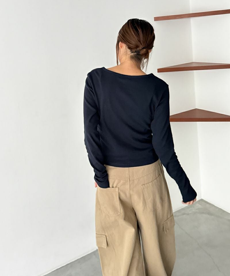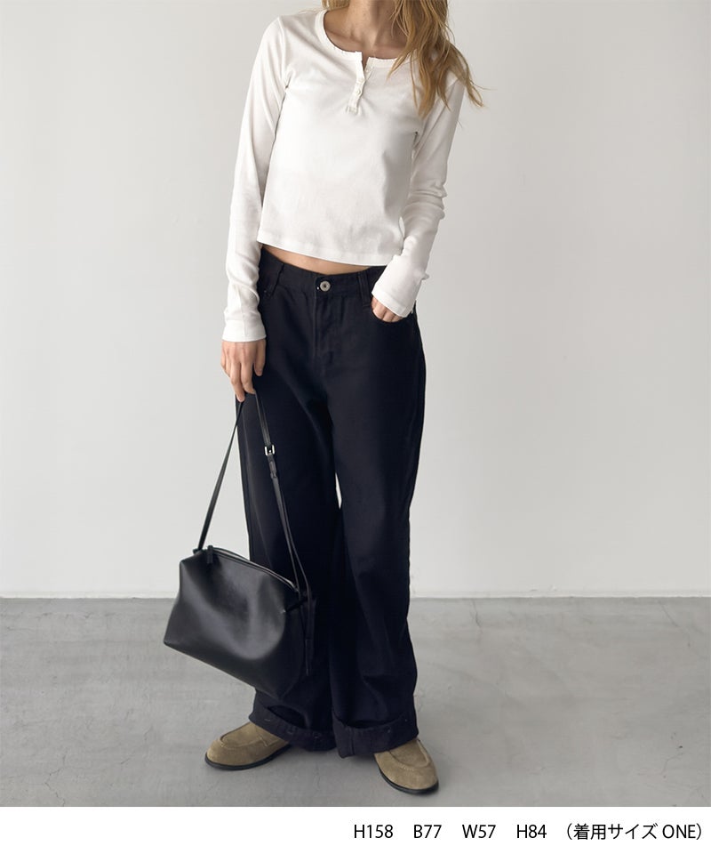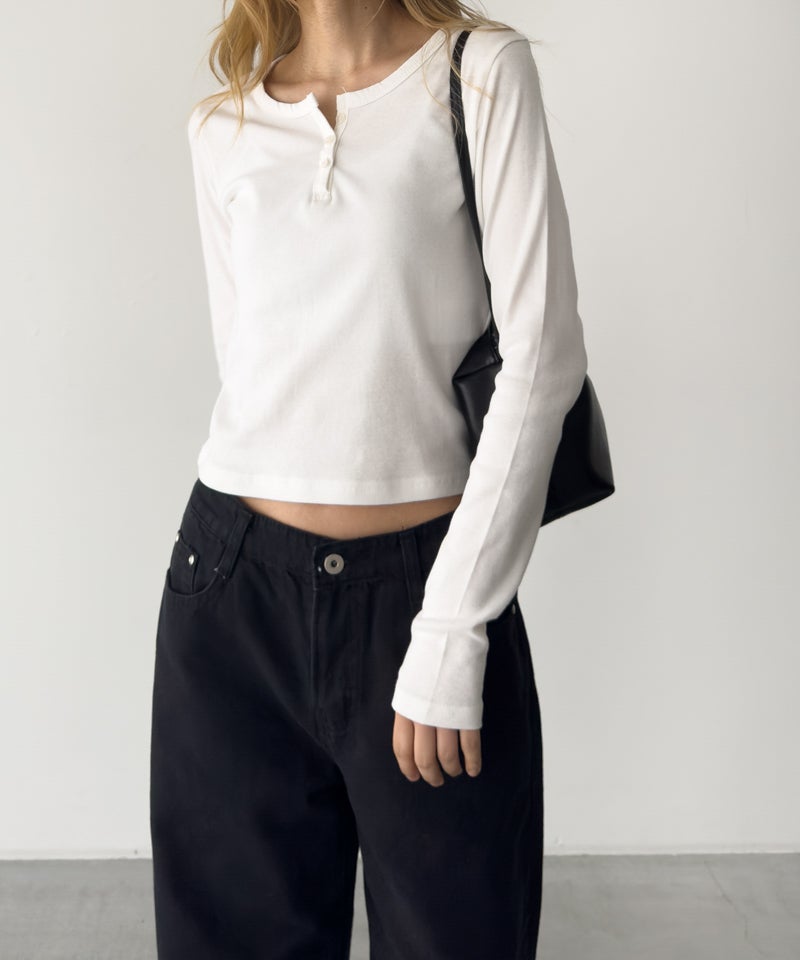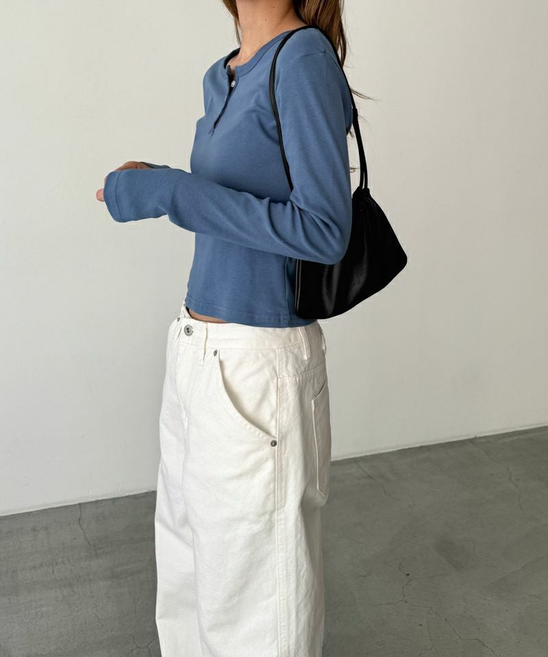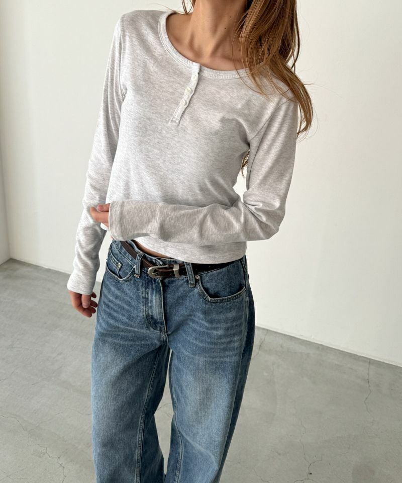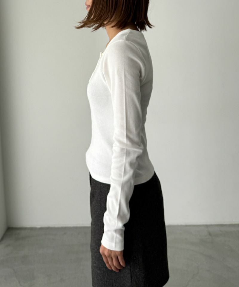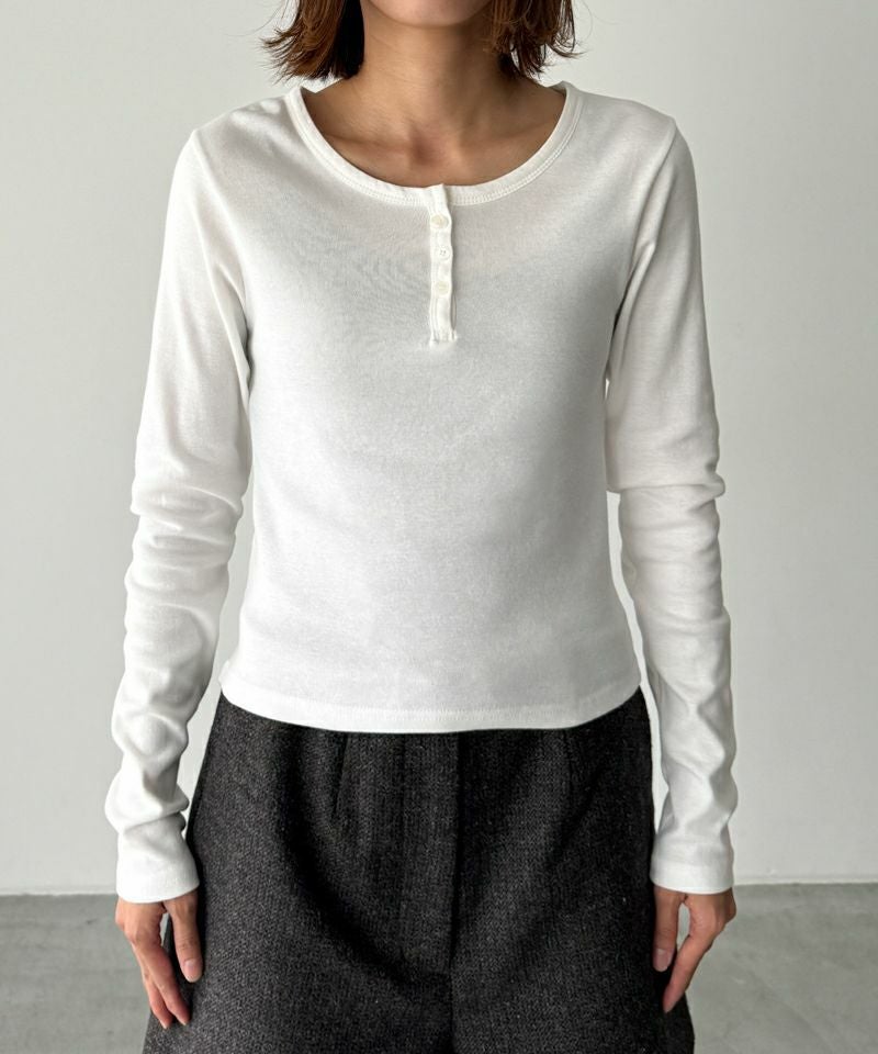 首元はヘンリーネック仕様ですっきりとした印象に。
