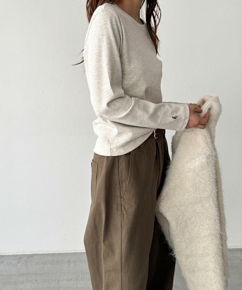 袖口の刺繍デザインがさり気ないワンポイントのロングTシャツ。