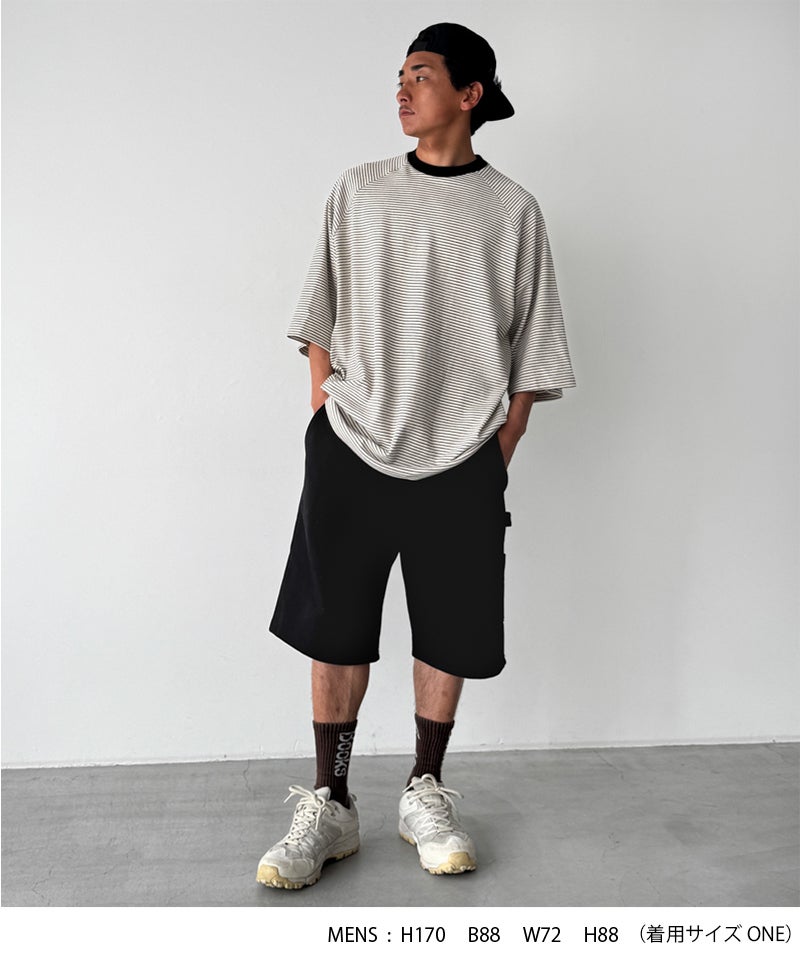 スウェットのラフな雰囲気に、ワークパンツらしいディテールを掛け合わせたハーフパンツ。