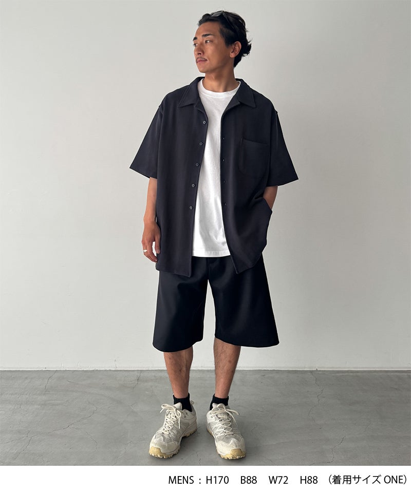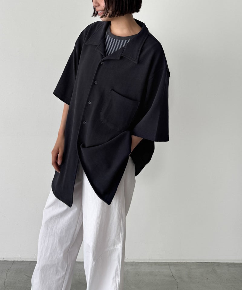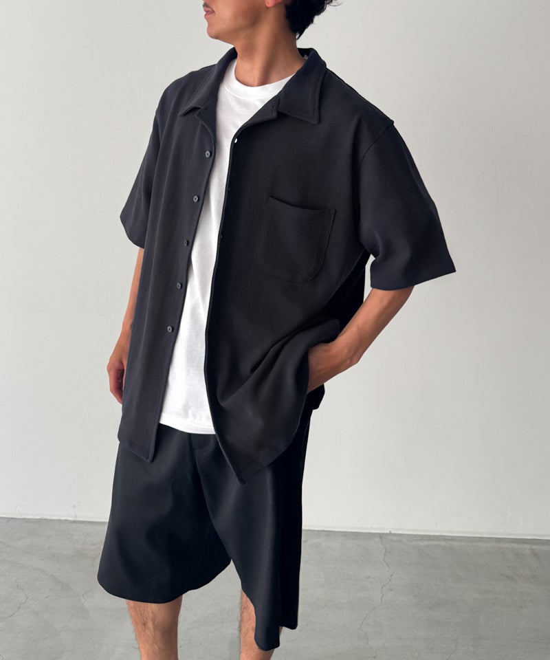 首元に程よい抜け感を与えてくれるオープンカラー(開襟)デザインの半袖シャツ。