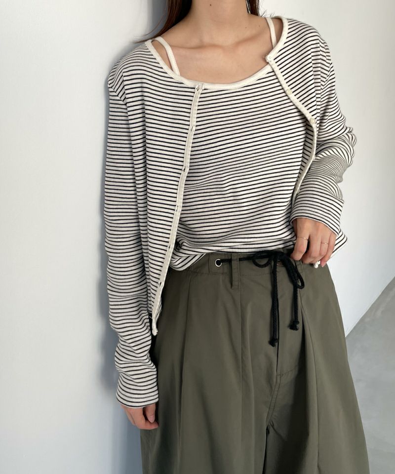 綺麗めコーデから、カジュアルなパンツを合わせた
